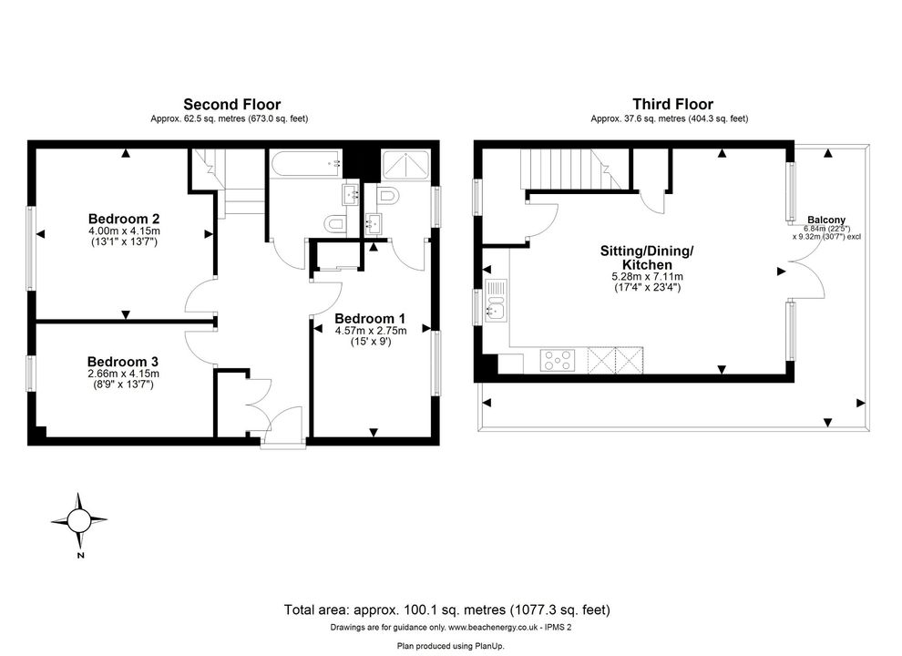 The apartment block is located off the road and down a quiet Close, with access through a secure entrance, with stairs leading to the front door of the apartment, which occupies the second and third floors. Upon entering, you are welcomed into an inviting entrance hall that includes a useful storage cupboard. This hall leads to three spacious double bedrooms, all bathed in light from large windows. The primary bedroom includes built-in storage and an ensuite shower room, while the second and third bedrooms offer generous size and flexibility of use. The family bathroom, also on this floor, is equipped with a modern three-piece suite, featuring a shower over the bath, a glass shower screen, a heated towel rail, and floor-to-ceiling tiles.