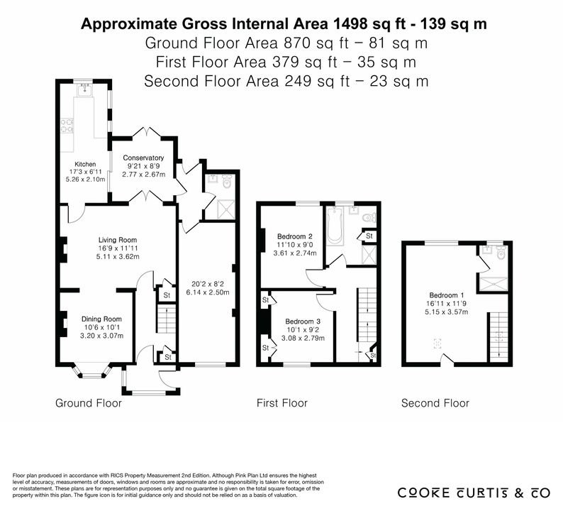 On the first floor there are two well-sized bedrooms, both served by a family bathroom fitted with a bath, shower, wash basin and WC. The landing provides access to further storage and the staircase to the second floor.