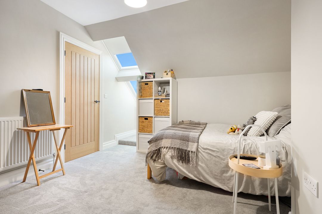 At the heart of the home is a stunning open-plan kitchen/dining/family room, designed for modern living. Flooded with natural light from its dual-aspect design and bi-fold doors to the rear, this impressive space features a high-specification kitchen with an array of wall and base units, stone worktops, a central island, and integrated appliances. A bespoke window seat overlooks the garden, while an exposed brick fireplace adds warmth and character. A separate utility/boot room provides additional storage, and a secondary sink, and houses the gas boiler and pressurised hot water cylinders.