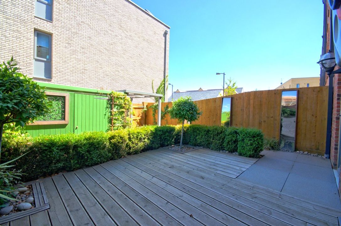 There is a neatly landscaped rear garden with a bike / bin store and behind the house a single garage with a further parking space in front of it.